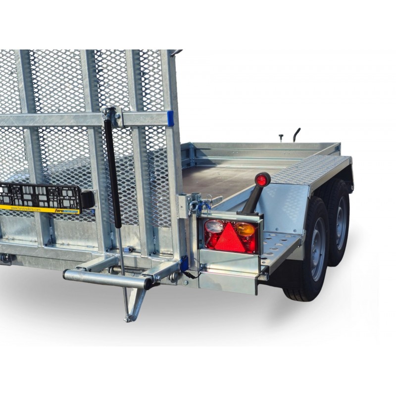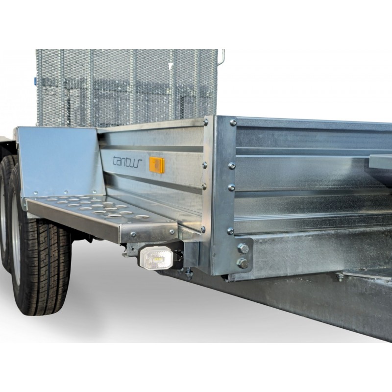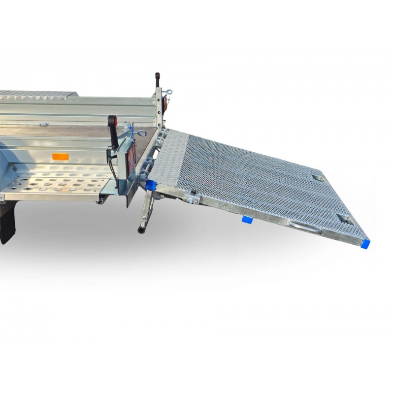 Doskonały kąt nachylenia do najazdu dzięki długiej rampie. Wyposażona w stopnie boczne ułatwiające korzystanie z przyczepy.