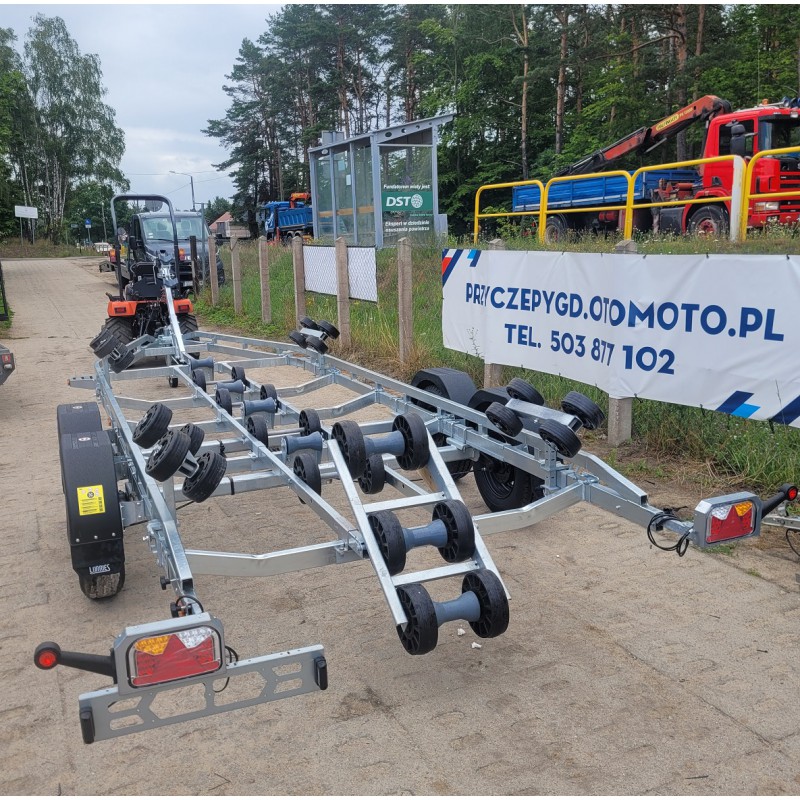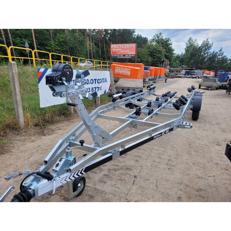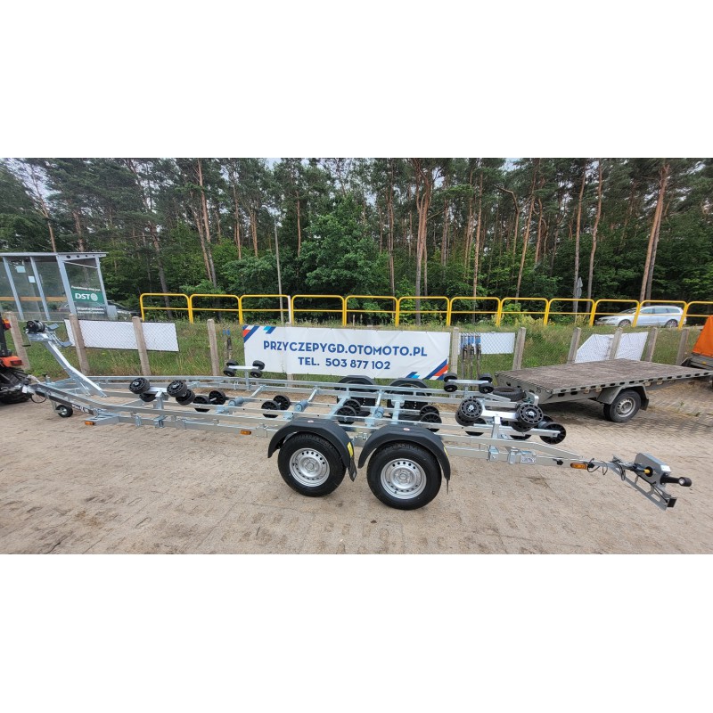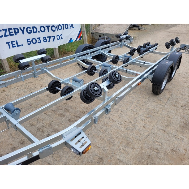 Tak jak pozostałe przyczepy serii BOAT przyczepa posiada oś z wodoszczelnymi łożyskami w piastach WATER PROOF firmy KNOTT lub AL-KO. Dostosowanie długości dyszla, osie montowane na cybantach oraz wysuwana tylna belka pozwalają na łatwe dostosowanie przyczepy do przewożonej łodzi.
