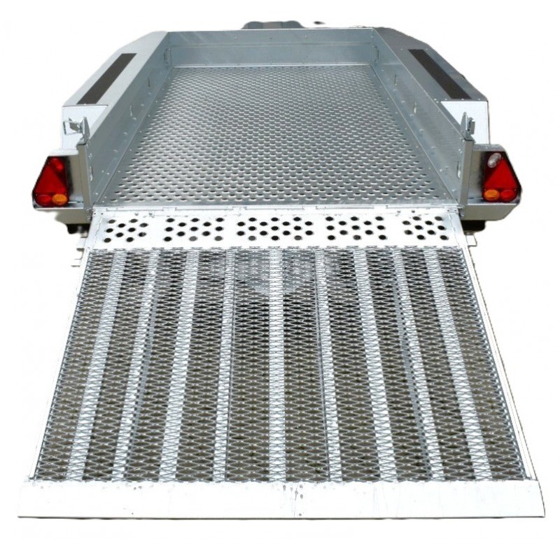 Cechuje ją duża powierzchnia załadunkową, zawieszenie oparte na 2 osiach solidną (wzmacnianą) konstrukcją ramy, długim solidnym dyszlem - sprawdzi się w każdych warunkach. Przyczepa wyposażona w rampę z doskonałym nachyleniem co ułatwia najazd, wzmocnioną o podporę poprzez całą jej szerokość.