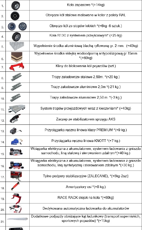 • dopuszczalna masa całkowita (DMC): 1500 do 3500 kg. co 50 kg.