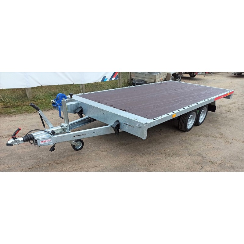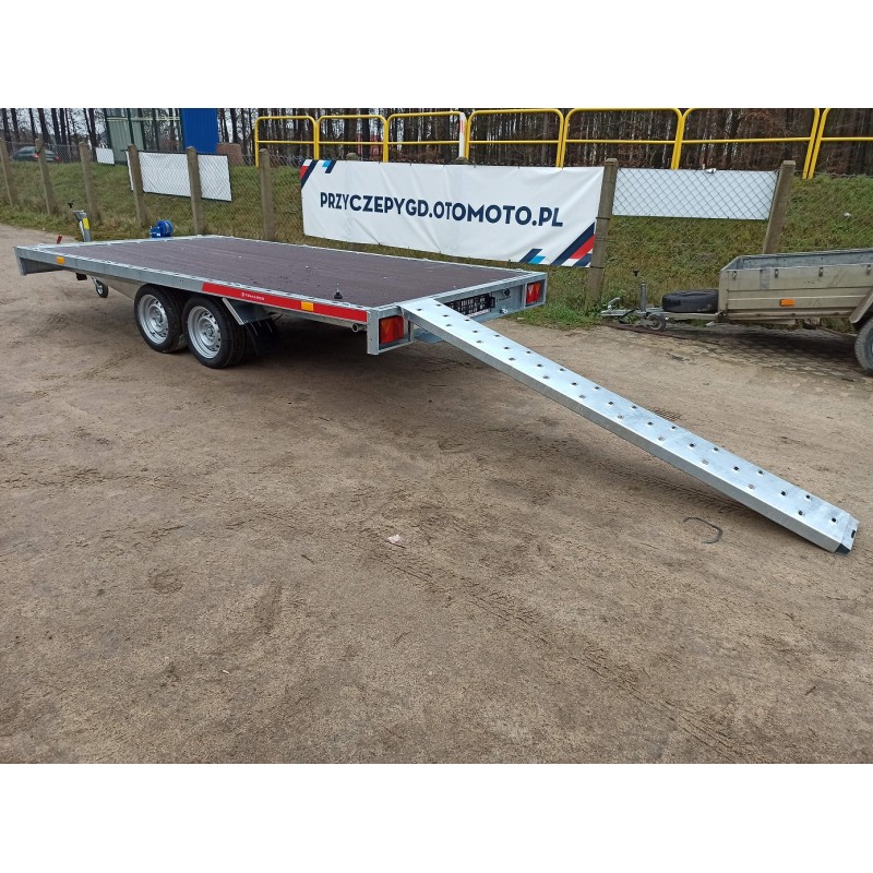 CAPLATFORM 4120 S– doskonała laweta / platforma z najazdami chowanymi po powierzchnią transportową, z możliwością dokupienia burt i używania przyczepy jako towarowej.