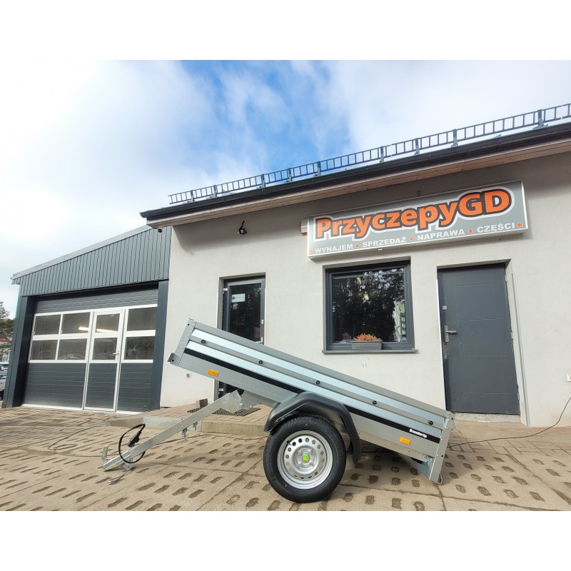 Doskonale sprawdzi się w pracach przydomowych czy na wakacjach. Przyczepa może być łatwo przechowywana w pozycji pionowej co pozwala zaoszczędzić miejsce. Jest wyposażona w odchylany i składany dyszel, który oszczędza miejsce przy przechowywaniu w pozycji pionowej. Dostępny szeroki program akcesoriów.