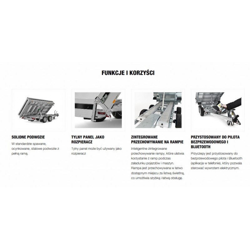 Świetne rozwiązanie dające możliwość transportu maszyn oraz materiałów takich jak drewno lub żwir i inne sypkie towary.