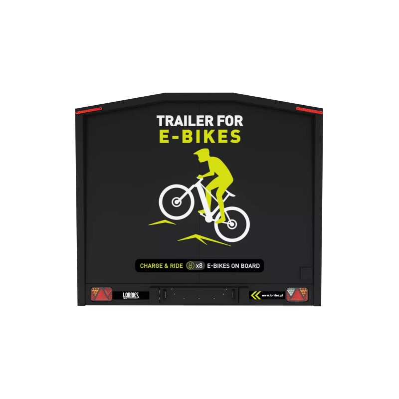 W standardzie przyczepa ma instalację ładowania e-bike’ów (8 gniazd + zewnętrzne przyłącze „kamperowe”), oświetlenie LED wewnętrzne i zewnętrzne oraz aluminiowe felgi 10” z amortyzowanymi osiami, co przekłada się na stabilną jazdę i ochronę przewożonego sprzętu.