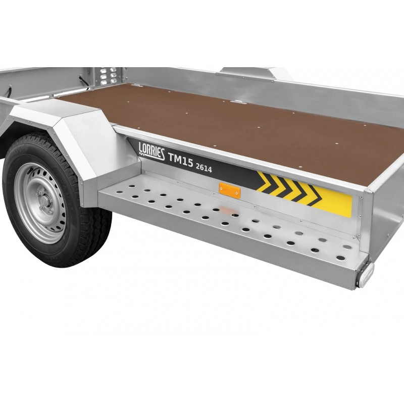Model TM15 posiada DMC 1500 kg. Można na nim umieścić ładunek o masie do ok. 1150 kg. Dyszel pojazdu stanowi integralną część ramy, co wpływa na stabilność i trwałość całej budowy. Konstrukcja przyczepy została tak zaprojektowana, aby maksymalnie ułatwić załadunek dowolnej maszyny i pojazdu. Pomocny w tym jest solidny trap najazdowy, po którym można wjechać, a dodatkową jego zaletą jest niski kąt nachylenia. Załadowany sprzęt można przypiąć pasami używając do tego 8 uchwytów znajdujących się po bokach przyczepy. Dodatkowo podłoga wykonana ze sklejki wodoodpornej i antypoślizgowej, zapewnia bezpieczny transport.