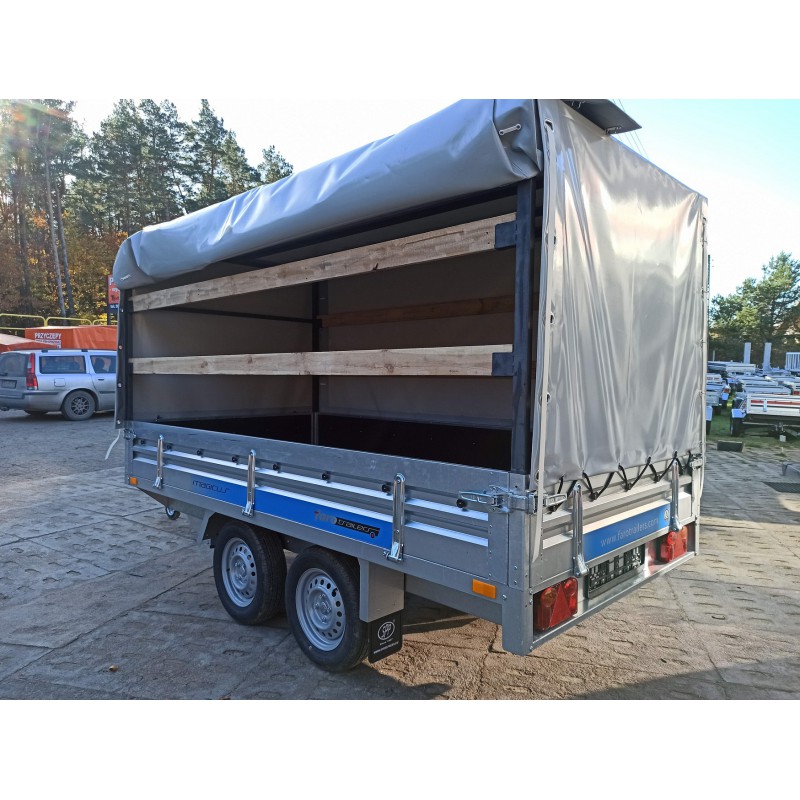 - Wszystkie burty otwierane i demontowalne (świetna przyczepa do przewozu europalet - łatwy załadunek wózkiem widłowym)