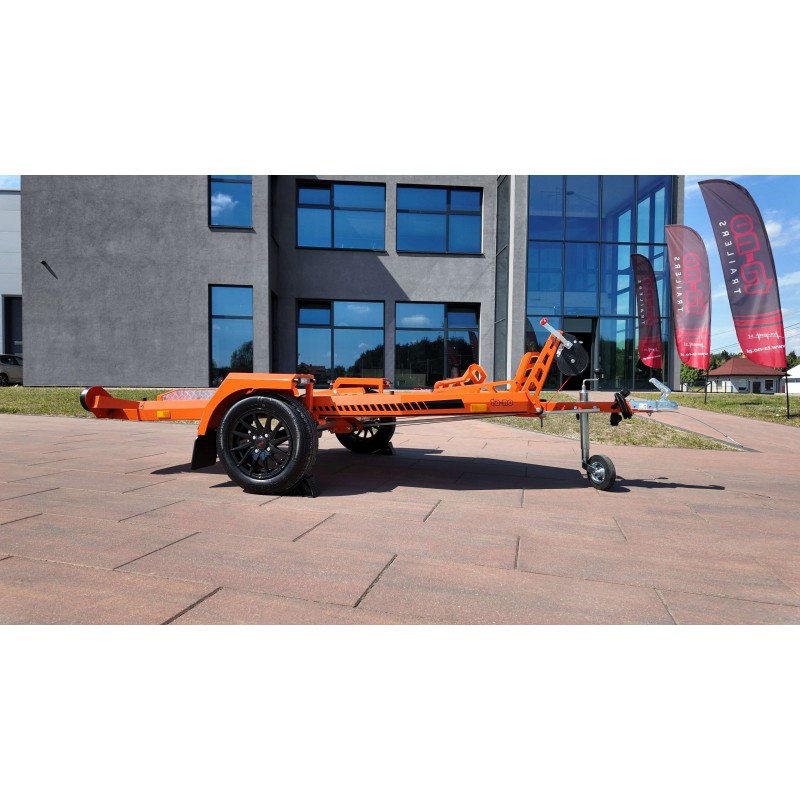 Jednoosiowa przyczepa lekka do transportu motocykli z eleganckim wykończeniem w kolorze, które dodaje szyku i nowoczesnego wyglądu w podróży. To wyjątkowy design, ale także najwyższa jakość i funkcjonalność, którą znasz z naszych standardowych modeli. Jest bardzo wygodnym środkiem transportu jednośladów. Konstrukcja oparta jest na stabilnej ramie, wsparta poprzecznymi wzmocnieniami.