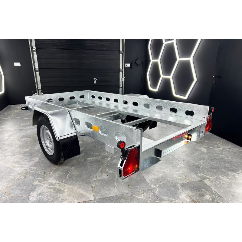 Rama przyczepy wykonana jest z profili zamkniętych, cynkowana ogniowo.