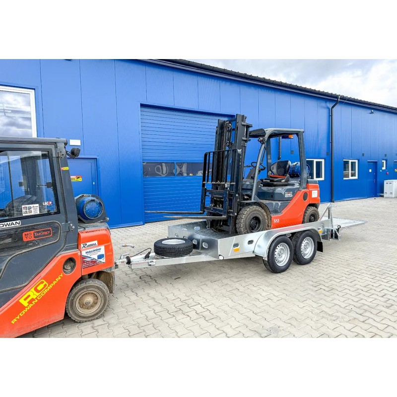 Wyposażenie standardowe: koło podporowe, koło zapasowe, najazdy 200 cm.