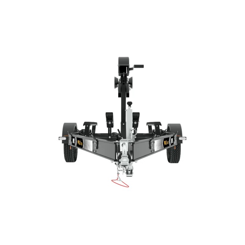 Rama przyczepy wykonana jest z lekkich, skręcanych profili aluminiowych, co ułatwia serwis i zwiększa odporność na korozję. Zastosowanie podwójnego dyszla z osłonami wewnętrznymi skutecznie chroni transportowaną jednostkę przed wodą i zanieczyszczeniami z drogi.