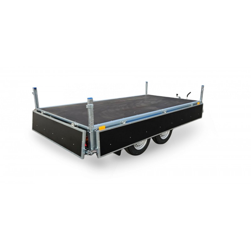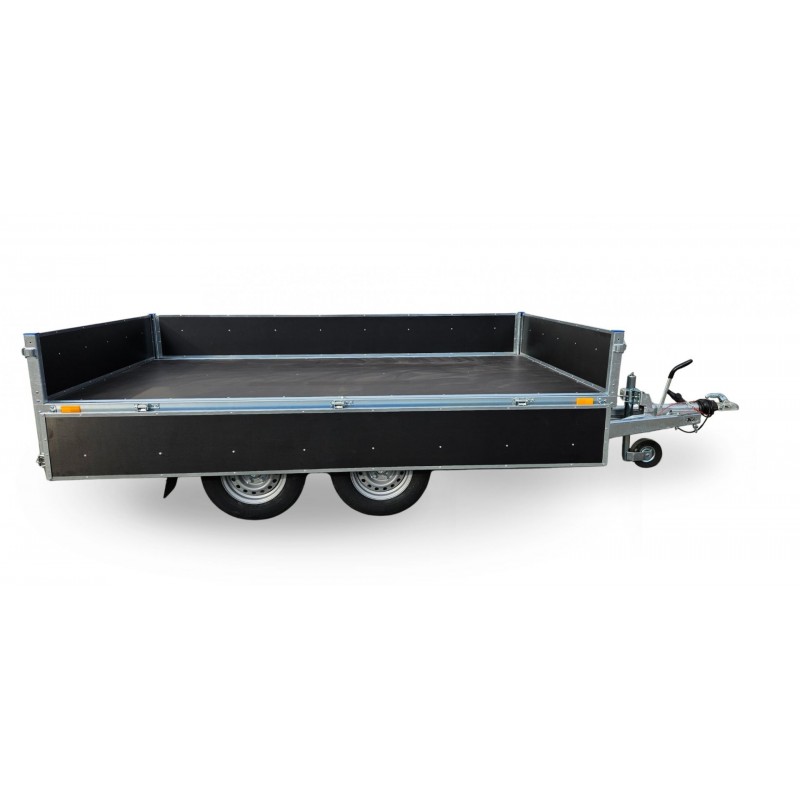 FARO MAGICUS MAX - to linia przyczep hamowanych oferowanych w trzech klasach o DMC do 1400kg, 2000kg oraz DMC do2700 kg. Elementy stalowe wykonano z wysokiej jakości blachy pokrytej warstwą cynku (klasa A). Konstrukcja przyczepy jest nitowana i skręcana , co zapewnia zarówno wysoką wytrzymałość jak również ułatwia wymianę uszkodzonych elementów. Dostępne w wersji ze stelażem i plandeką, jak również w wersji z burtami wypełnionymi sklejką. Wysokiej jakości układ hamulcowy firmy KNOTT lub AL-KO gwarantuje komfort prowadzenia. Przyczepa o wielu zastosowaniach zarówno dla biznesu jak również dla innych wymagających użytkowników.