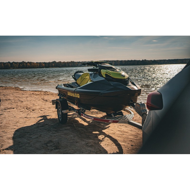 Przyczepa pod skutery wodne JET serii BOAT to przyczepa samochodowa przeznaczona do przewozu skuterów wodnych. Tak jak pozostałe przyczepy serii BOAT przyczepa posiada oś z wodoszczelnymi łożyskami w piastach WATER PROOF firmy KNOTT lub AL-KO. Możliwość szybkiego demontażu tylnej belki ze światłami. Przyczepa pod skutery wodne JET produkowana jest w technologi spawanej z profili zamkniętych a następnie cynkowana ogniowo.