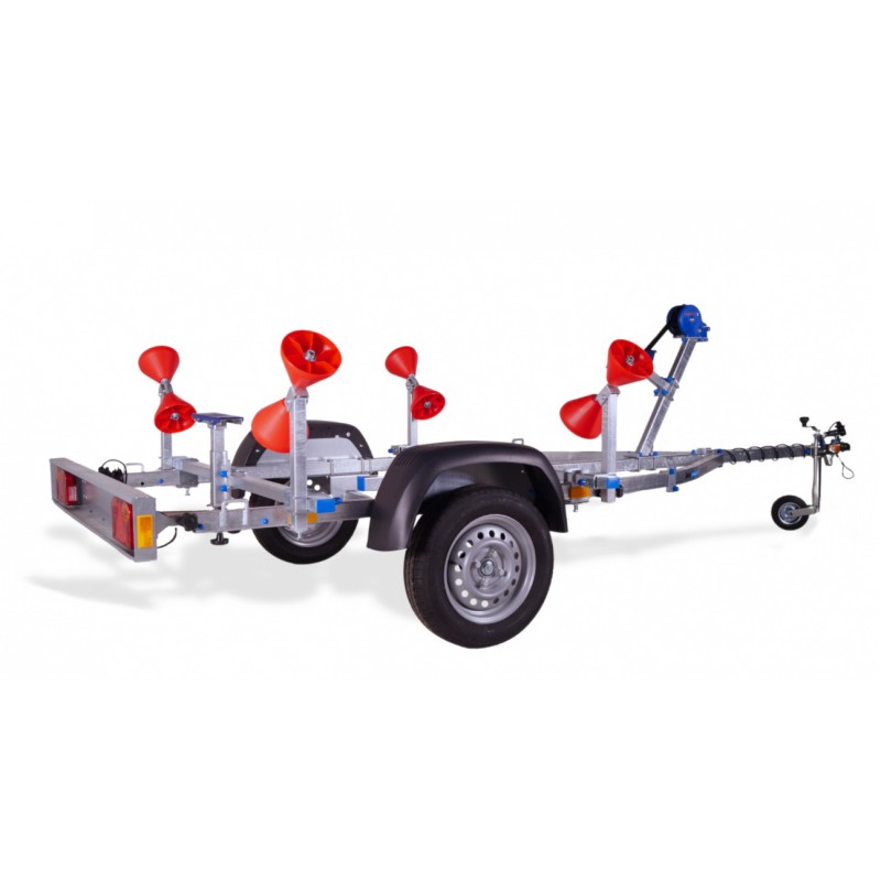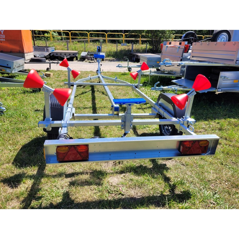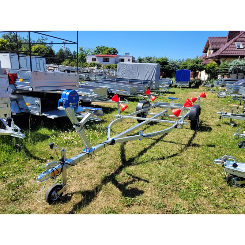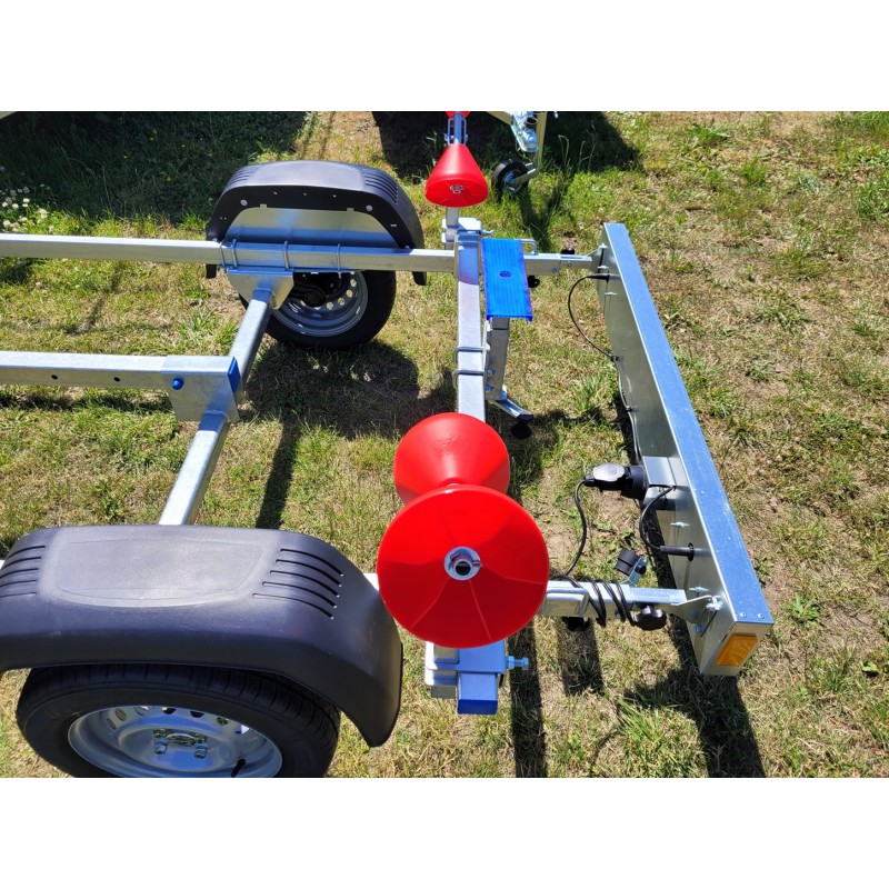 Przyczepa pod skutery wodne JET serii BOAT to przyczepa samochodowa przeznaczona do przewozu skuterów wodnych. Tak jak pozostałe przyczepy serii BOAT przyczepa posiada oś z wodoszczelnymi łożyskami w piastach WATER PROOF firmy KNOTT lub AL-KO. Możliwość szybkiego demontażu tylnej belki ze światłami. Przyczepa pod skutery wodne JET produkowana jest w technologi spawanej z profili zamkniętych a następnie cynkowana ogniowo.