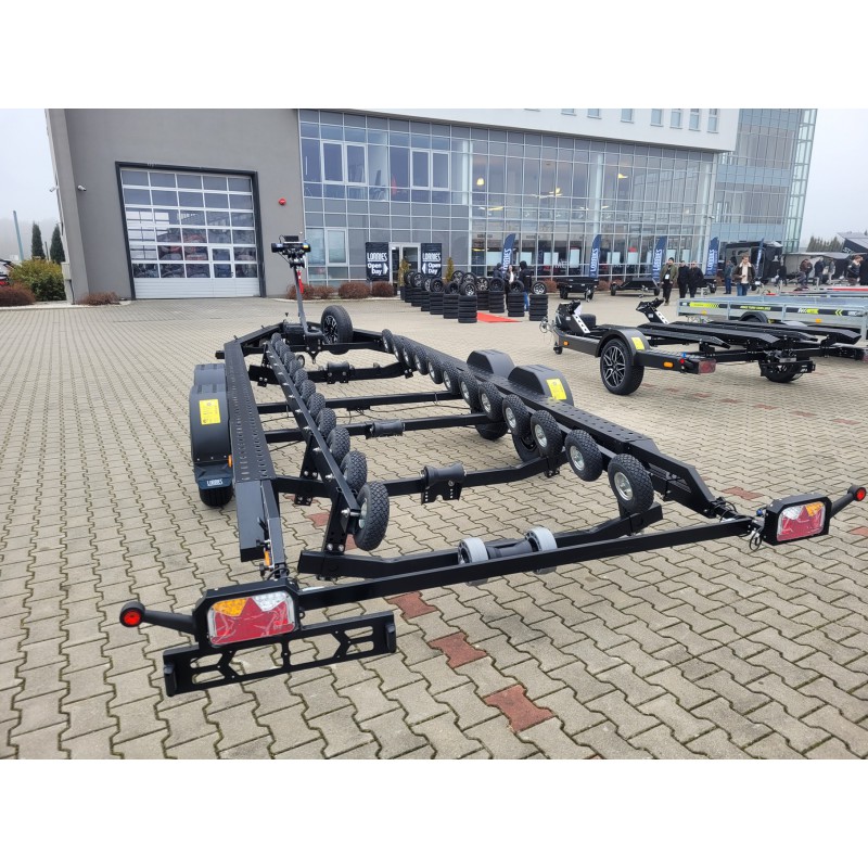 Tak jak pozostałe przyczepy serii BOAT przyczepa posiada oś z wodoszczelnymi łożyskami w piastach WATER PROOF firmy KNOTT lub AL-KO. Dostosowanie długości dyszla, osie montowane na cybantach oraz wysuwana tylna belka pozwalają na łatwe dostosowanie przyczepy do przewożonej łodzi.
