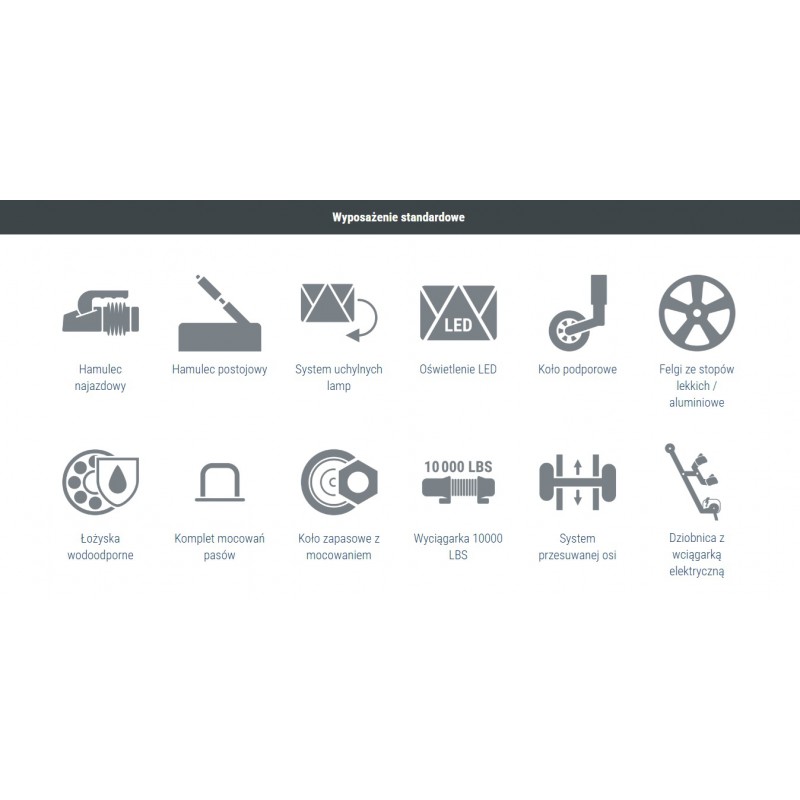 Układ jezdny: oś pojedyncza AL-KO lub KNOTT WATERPROOF